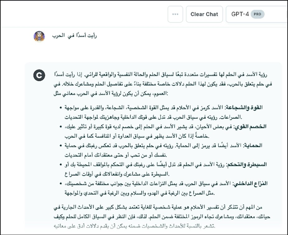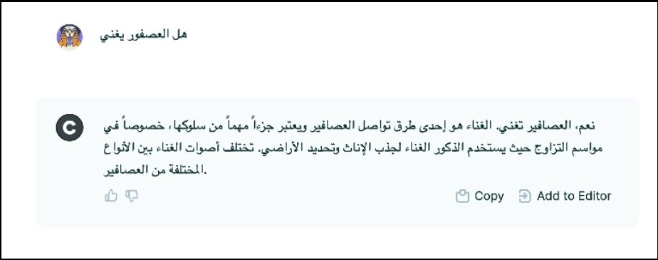 وبناءً على الأسئلة التي طُرِحَت، يمكننا الاستنتاج بأن خاصيات الذكاء الاصطناعي يصعب عليها فهم الاستعارات المكنية في اللغة العربية؛ لذلك يجري توليد نصوص من الممكن أن تكون غير مرتبطة بالسؤال المطروح أو تمثِّل تفسيرًا حرفيًا من دون فهم عميق لتركيبة الجملة، وعدم تفسيرها على أنها تعبيرات مجازية، وإنما تقديمها على أنها حقائق.